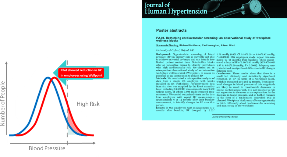 The Primary Health Care Sciences Group Oxford University demonstrated that self-monitoring with a Wellpoint resulted in population-level reductions in blood pressure. Even small reductions in the population results meant an overall reduction in cardiovascular risk.